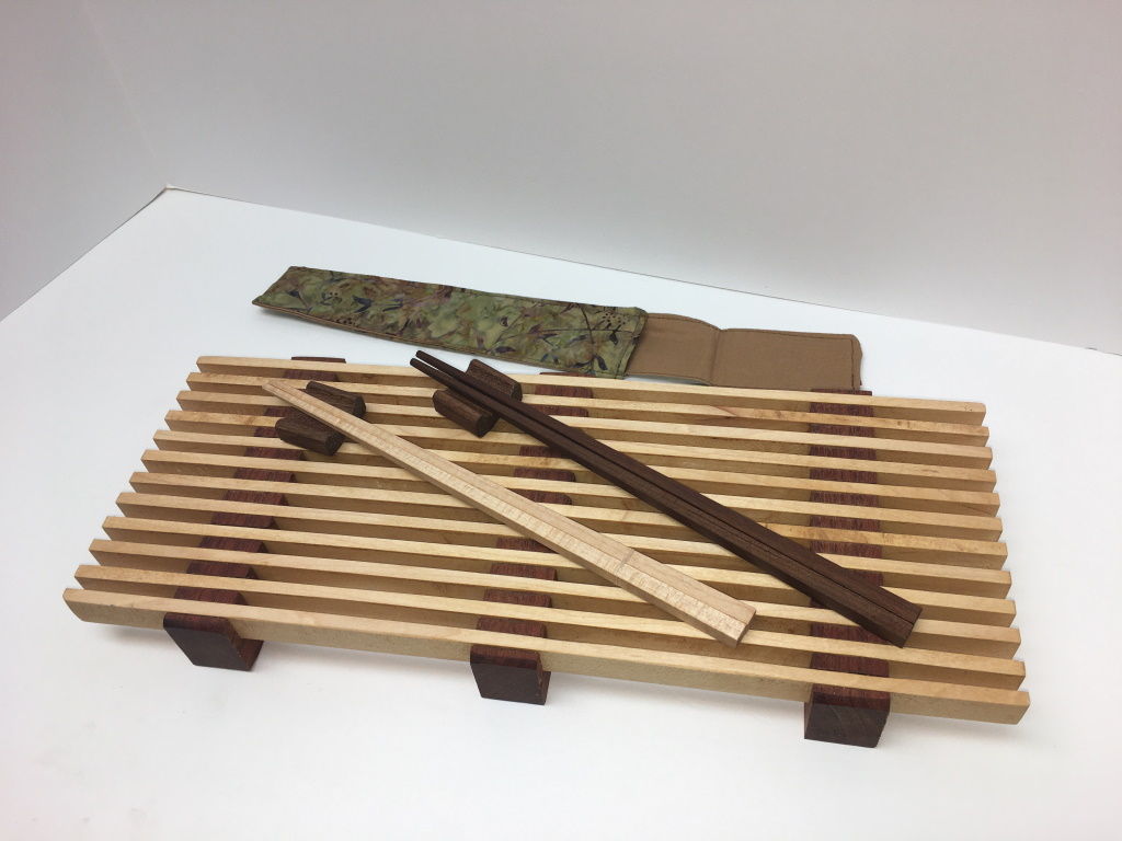 A favorite since 2018, the Japanese serving set and chopstick sets will enhance your table and garner much appreciation from your family and guests.  The chopstick set includes two pairs of hand-cut chopsticks, two rests, and a storage sleeve. The full serving set adds a gorgeous maple and jatoba trivet. Please select the chopstick material from the list before adding to your cart.